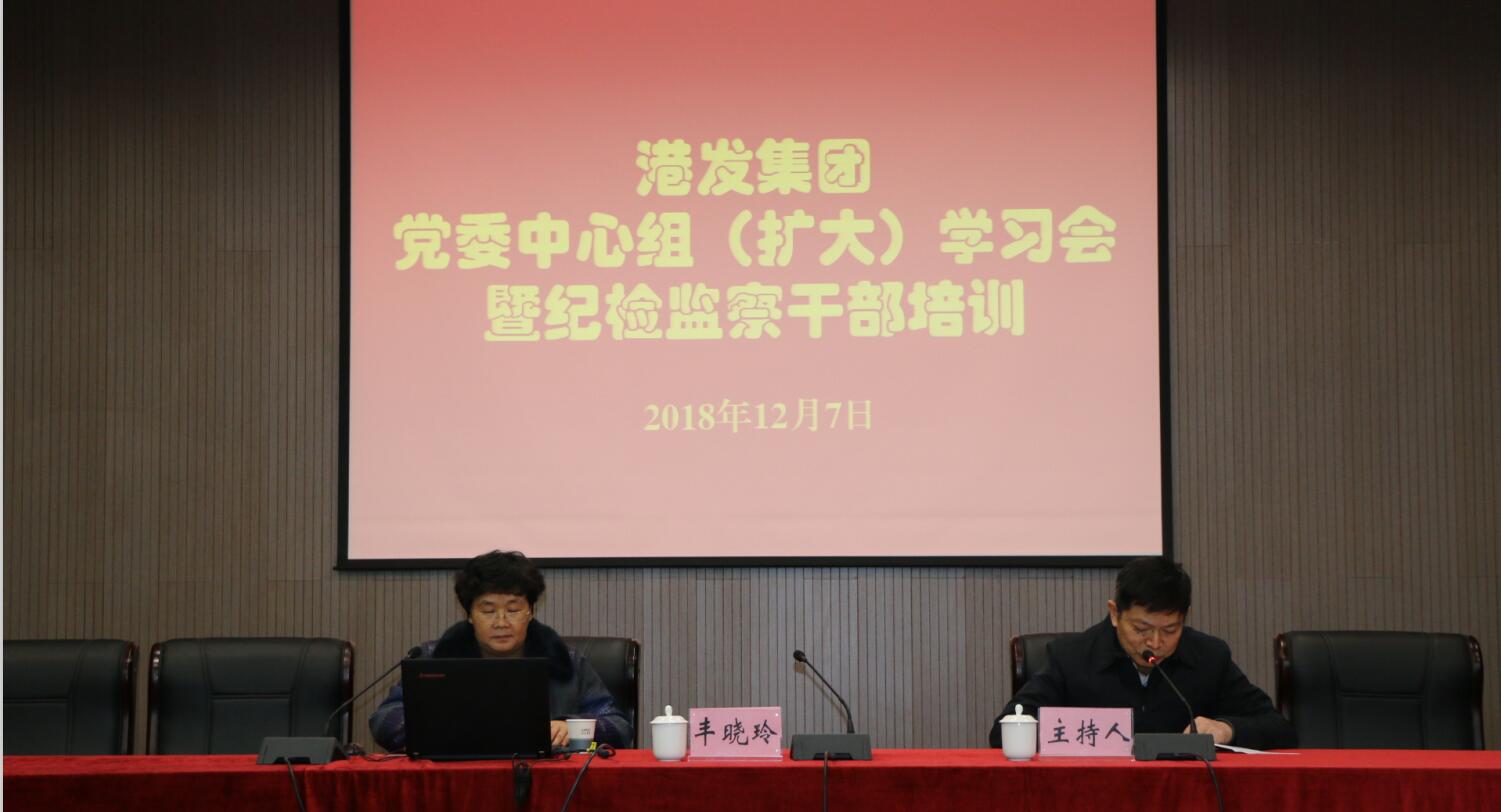 12月7日下昼,,,,,,,,港发集团召开党委理论学习中心组(扩大)学习暨纪检监察干部培训班,,,,,,,,专题学习新修订的《纪律处分条例》。。。。。武汉市纪委派驻市国资委纪检组副组长丰晓玲应邀作专题向导。。。。。集团公司党委副书记、副董事长、...